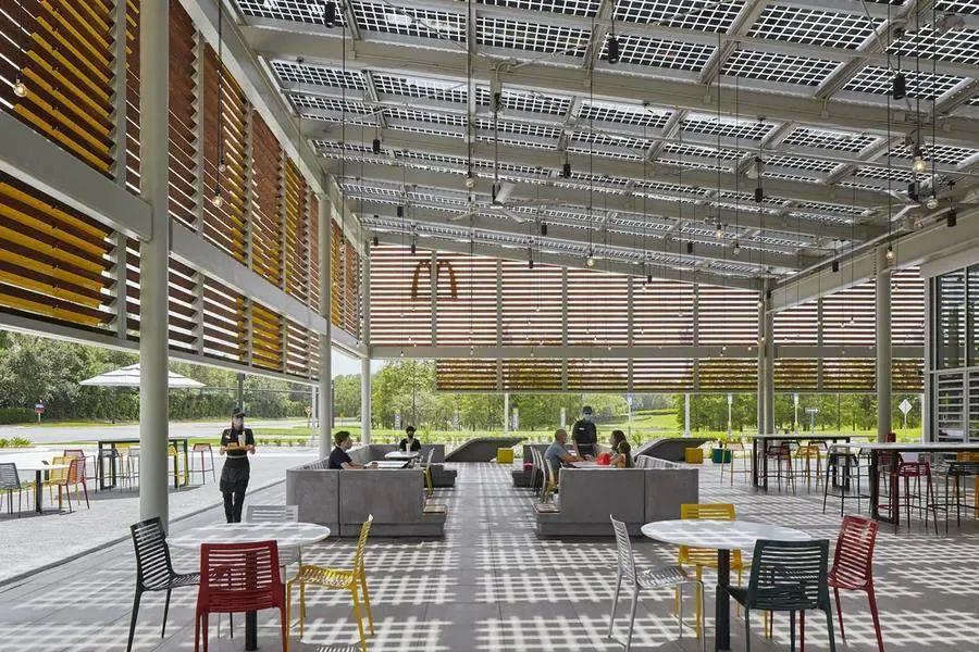 2021年,位于美国的一家麦当劳门店就被改造成全球首家环保旗舰店,是一家「完全使用太阳能等再生能源运营」的餐厅。