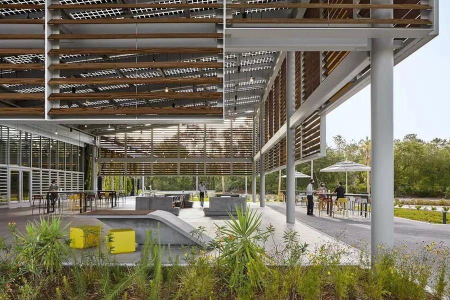 关于餐饮节能环保,除了室内层面,其实我们还有着更多探索空间。一个自然开放的餐饮室外空间,亦是一个节能低碳理念传达的好选择。
