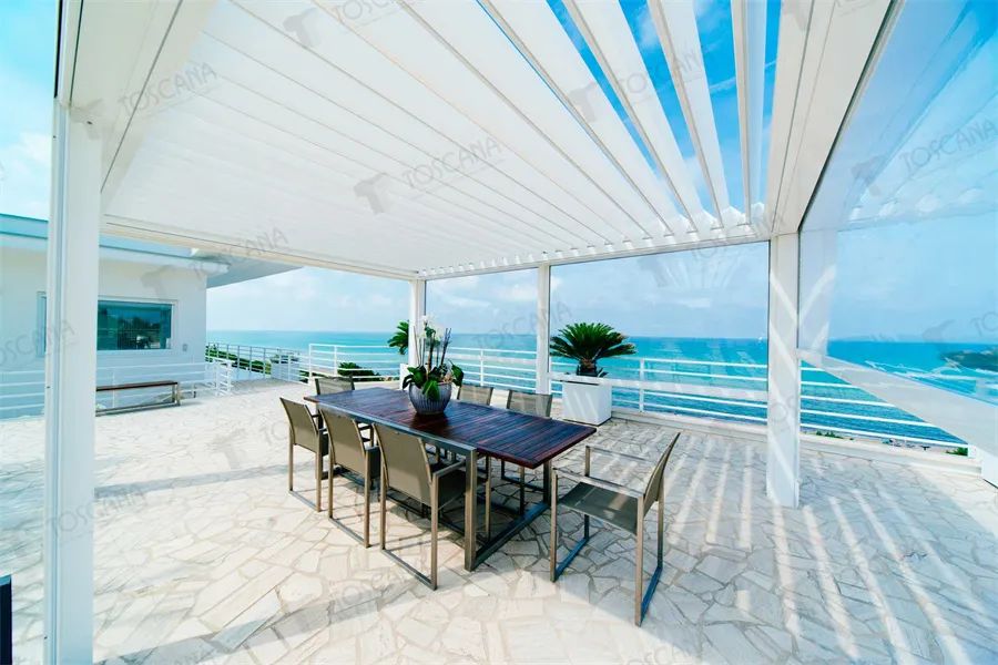 TOSCANA外遮阳棚;在相关旅游APP的人群调研报告中表明,开放性的、亲近自然阳光的休闲方式对87%的度假人群更具备吸引力。
