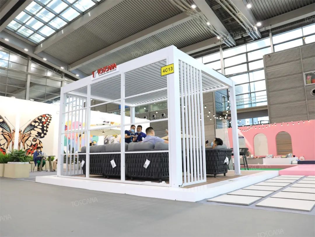 TOSCANA在4C13b展馆,邀您一起品味室外空间全新魅力。户外电动遮阳棚厂家/推拉式遮阳棚厂家/电动遮阳帘/遮阳卷帘/天幕遮阳篷/玻璃雨棚