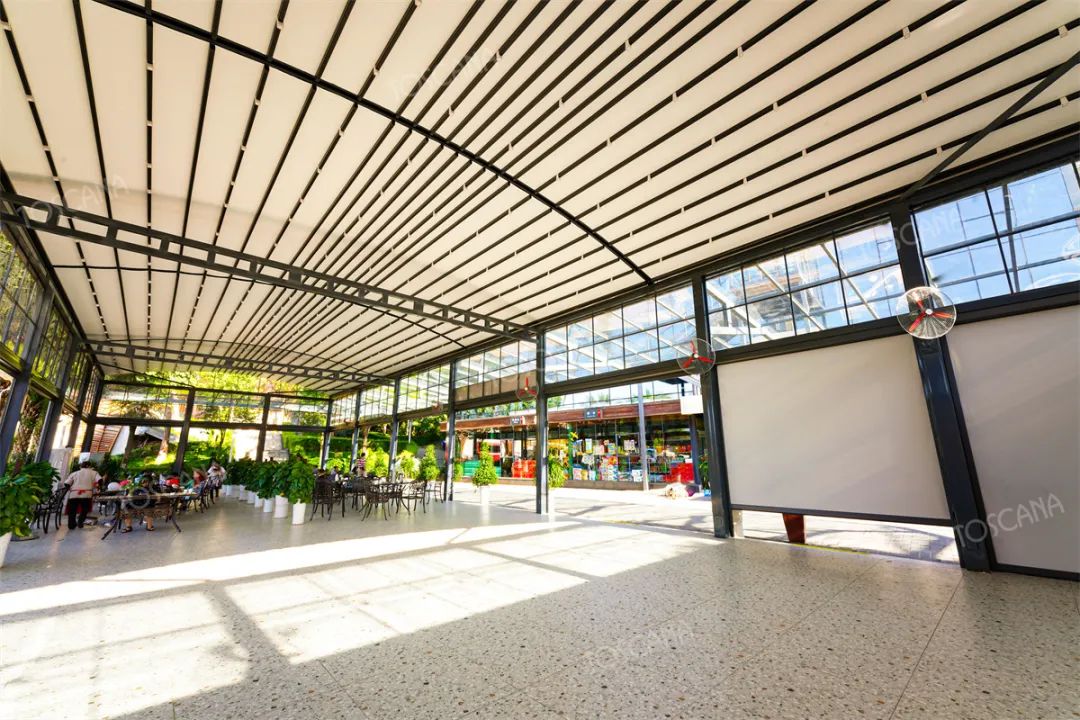 光影柔和的自然基底与科技智能融合映现生态美,执着于找寻城市里的一处绿色、一缕风、一束阳光,将这些自然元素当代化应用,最大化的室外利用与精心布局的空间秩序,TOSCANA在城市中心,打造了一处处舒适自然的空间。户外电动遮阳棚厂家/推拉式遮阳棚厂家/电动遮阳帘/遮阳卷帘/天幕遮阳篷/玻璃雨棚