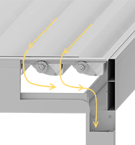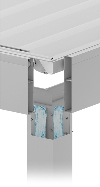 智能生态篷拥有良好的隐藏式排水系统。雨天情况下,雨水通过百叶分流到内部的水槽,再通过水槽导流,引导积水进入立柱。
