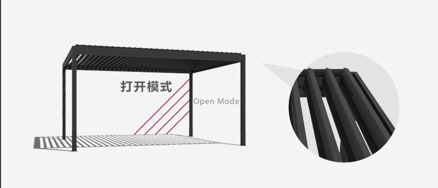 外观上更是糅合欧美前沿的室外遮阳设计理念,轻奢时尚的设计,充满质感的轮廓,彰显着生活的品质与个性,无论是私人住宅或是时尚商业环境都能完美融合。